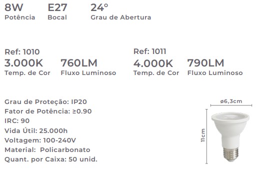 LÂMPADA LED PAR20 SOF 8W – 1010/1011