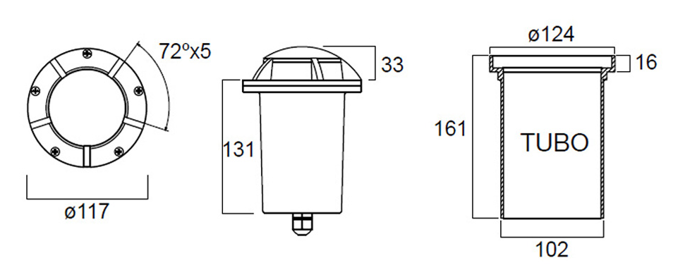 Aplicação: Embutir em solo, jardim, caminhos, praças, externa ou interna