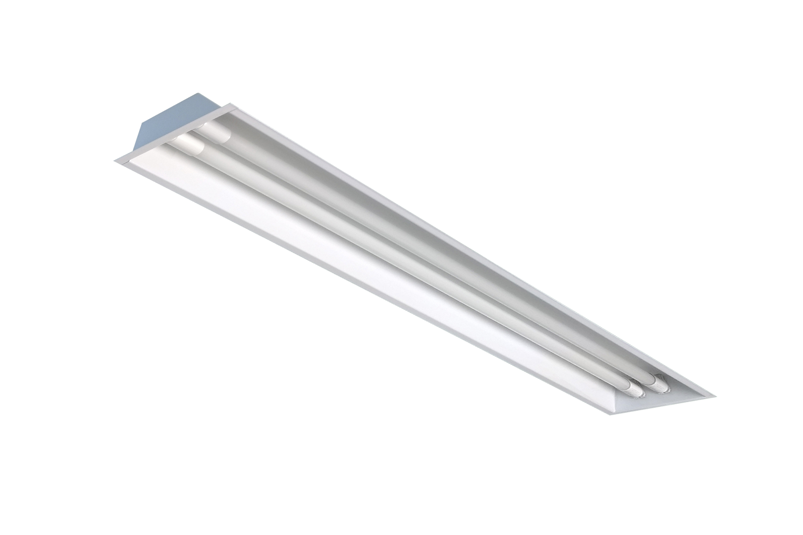 Luminária de embutir em forro de gesso ou modulado. Corpo em chapa de aço tratada isenta de ondulação. Pintura eletrostática epóxi na cor branca. Soquetes T8 em policarbonato anti-vibratório de engate rápido.