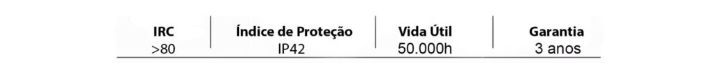 LEDs SMD de alto desempenho aplicados sobre placa de circuito impresso. Driver multitensão com alto fator de potência e baixo THD.