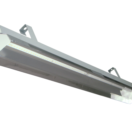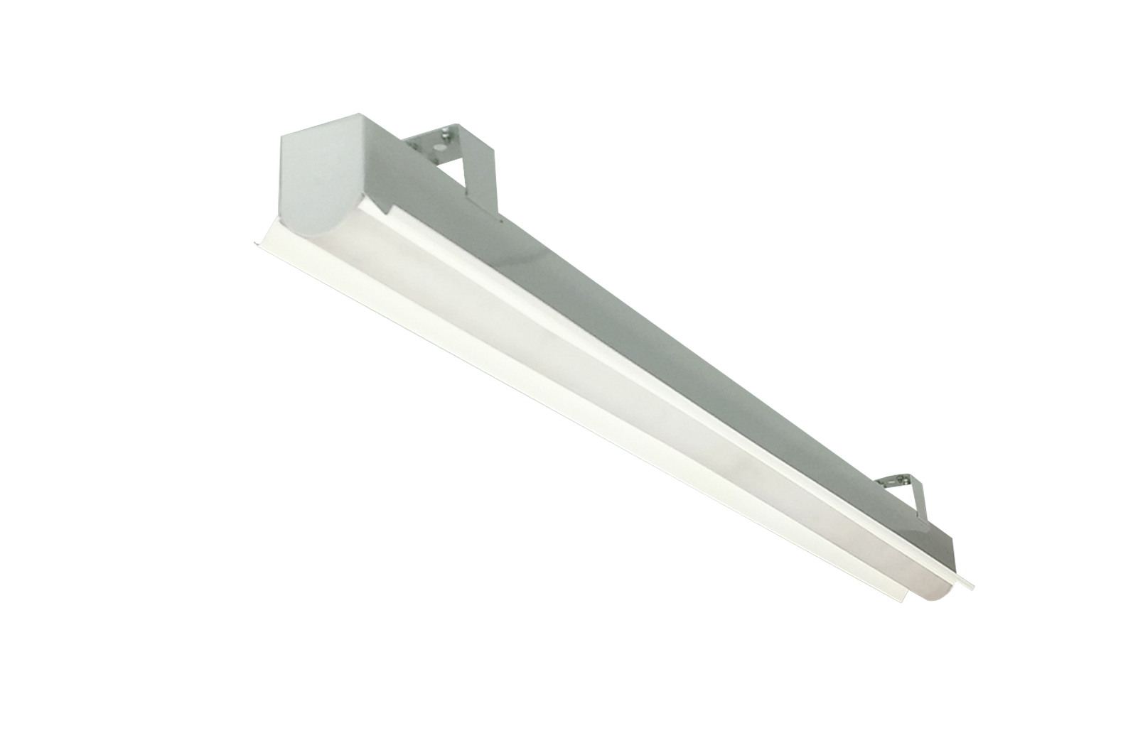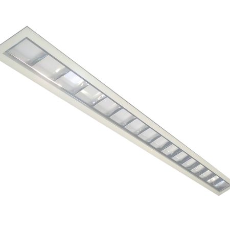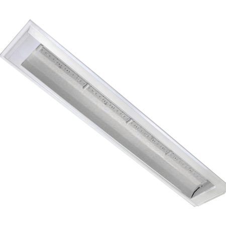 Luminária linear de sobrepor ou pendente. Corpo e refletor em chapa de aço tratada isenta de ondulação. Pintura eletrostática epóxi na cor branca. Difusor em policarbonato texturizado.