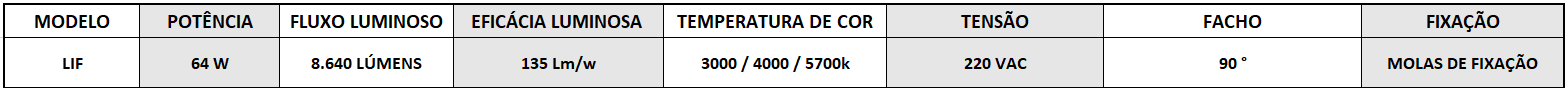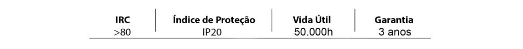 Luminária LED de embutir. Corpo e refletor em chapa de aço tratada isenta de ondulação. Pintura eletrostática epóxi na cor branca. LEDs SMD de alto desempenho aplicados sobre placa de circuito impresso. Driver multitensão com alto fator de potência e baixo THD.
