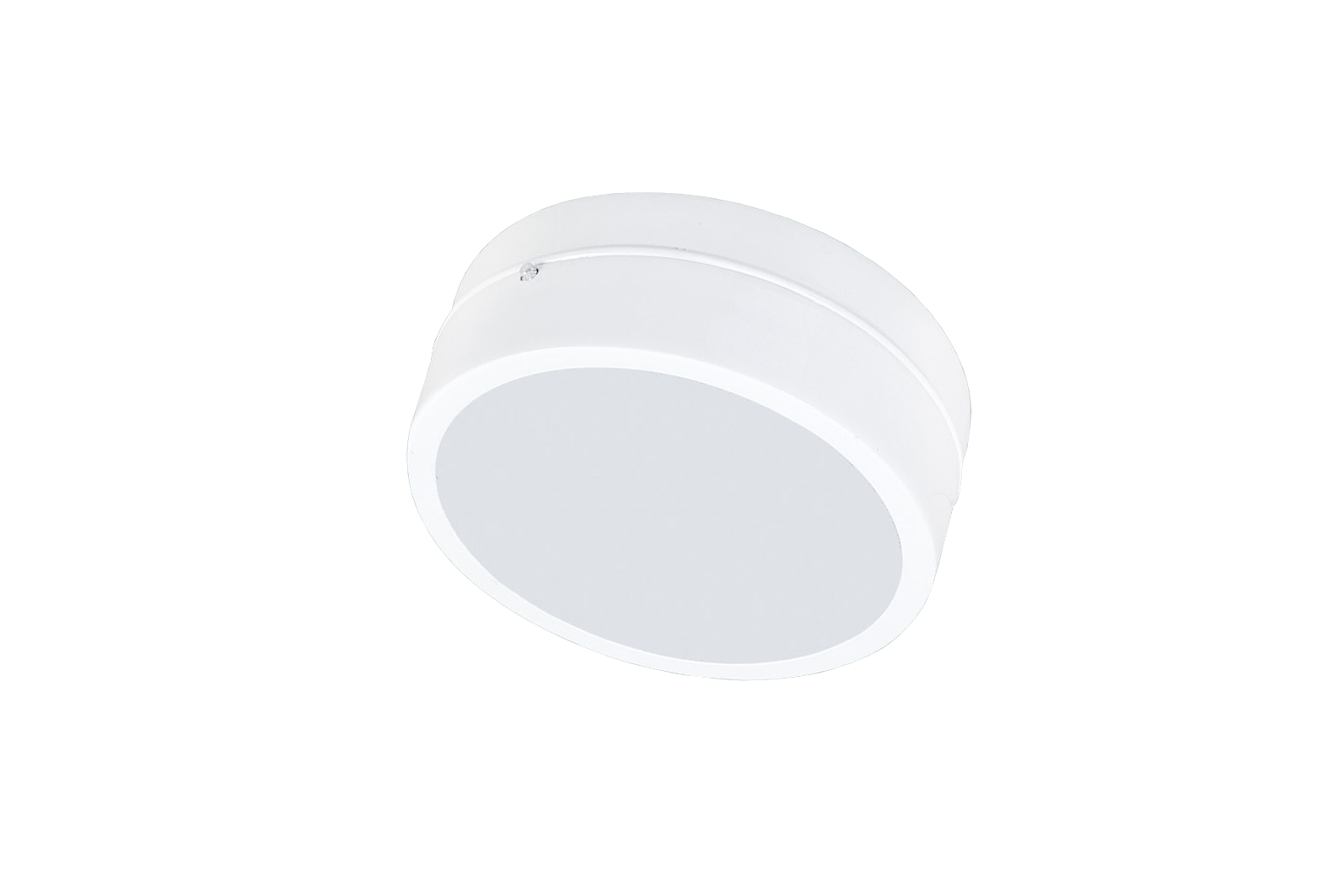 Luminária decorativa circular de sobrepor. Corpo em alumínio repuxado. Pintura eletrostática epóxi na cor branca. Difusor em PS translúcido. LEDs SMD de alto desempenho aplicados sobre