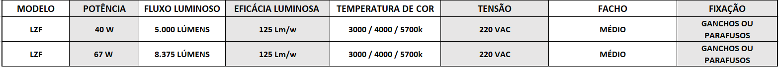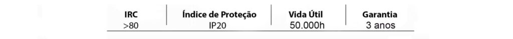 Luminária LED de sobrepor ou pendente. Corpo em chapa de aço tratada isenta de ondulação. Pintura eletrostática epóxi na cor branca. Refletor em alumínio de alto brilho e refletância. LEDs SMD de alto desempenho aplicados sobre placa de circuito impresso. Driver multitensão com alto fator de potência e baixo THD.