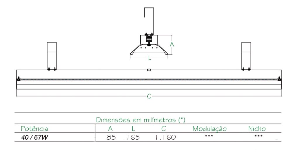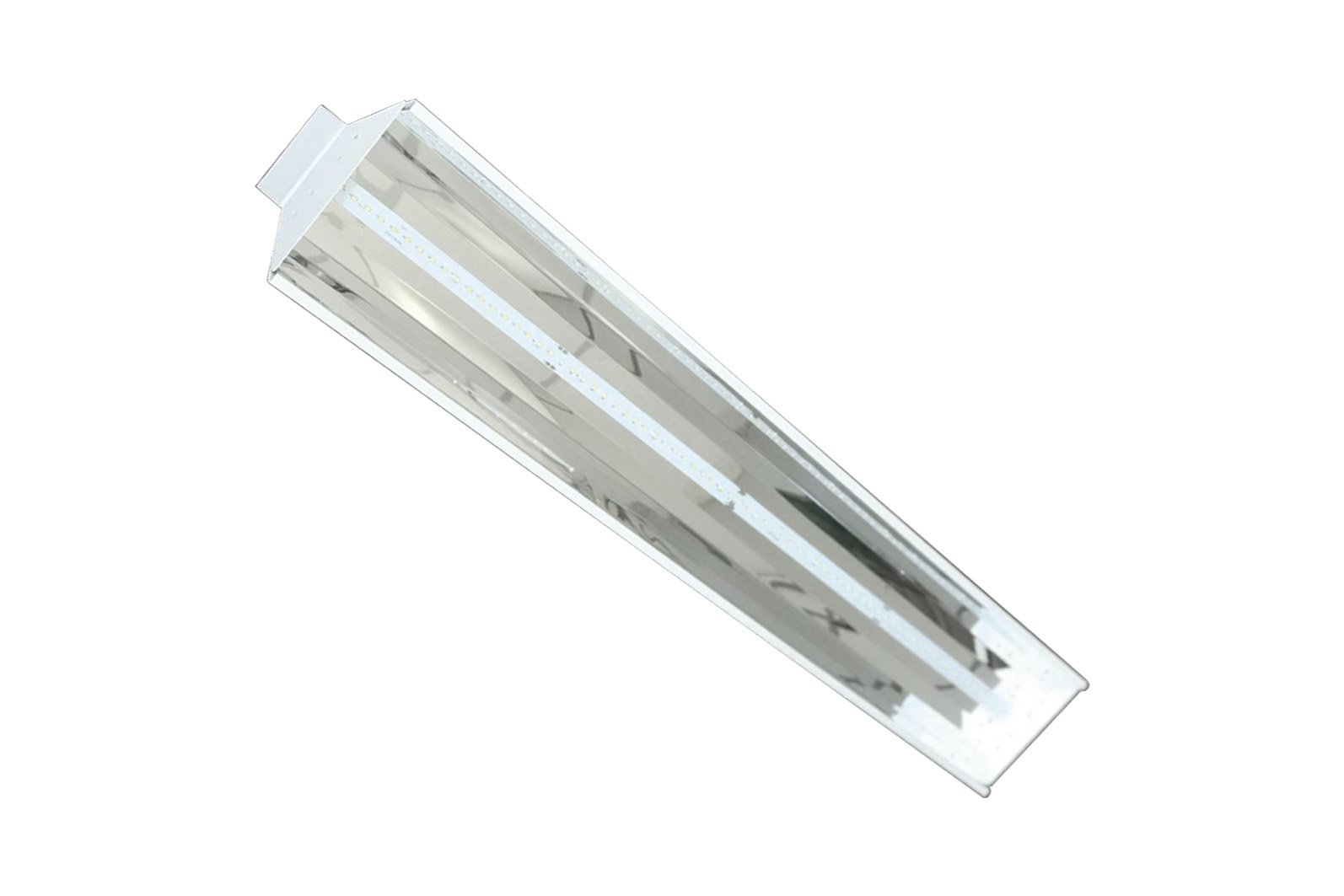 Luminária LED de sobrepor ou pendente. Corpo em chapa de aço tratada isenta de ondulação. Pintura eletrostática epóxi na cor branca. Refletor em alumínio de alto brilho e refletância. LEDs SMD de alto desempenho aplicados sobre placa de circuito impresso. Driver multitensão com alto fator de potência e baixo THD.